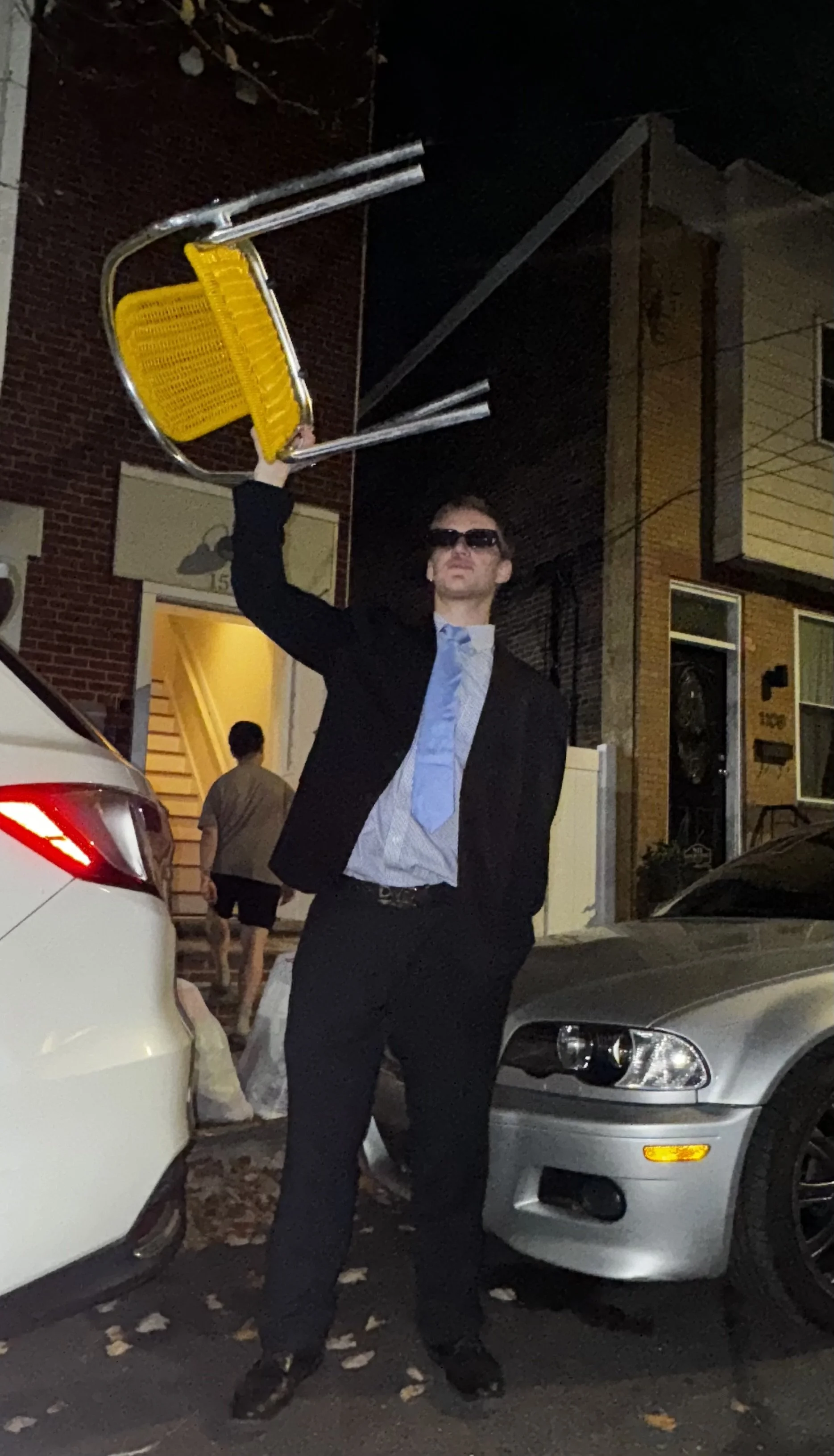Bodies bound wall to wall. Whatever fuels them is left splattered on the plywood. A man in a yellow t-shirt gets up to speed and jumps onto one hand, flinging himself upside down into the right wall. He scrambles to his feet. He bolts to the other side. He plants his hand and jumps back-first into a woman on the wall. Her seltzer erupts. Alcohol drips from her giggling face. A short man runs through the crowd in proper football form. My stomach catches his shoulder. I push down on his scapula. He loses balance and meets the floor cheek to concrete. He rejoins the dance, grin dripping with blood.
